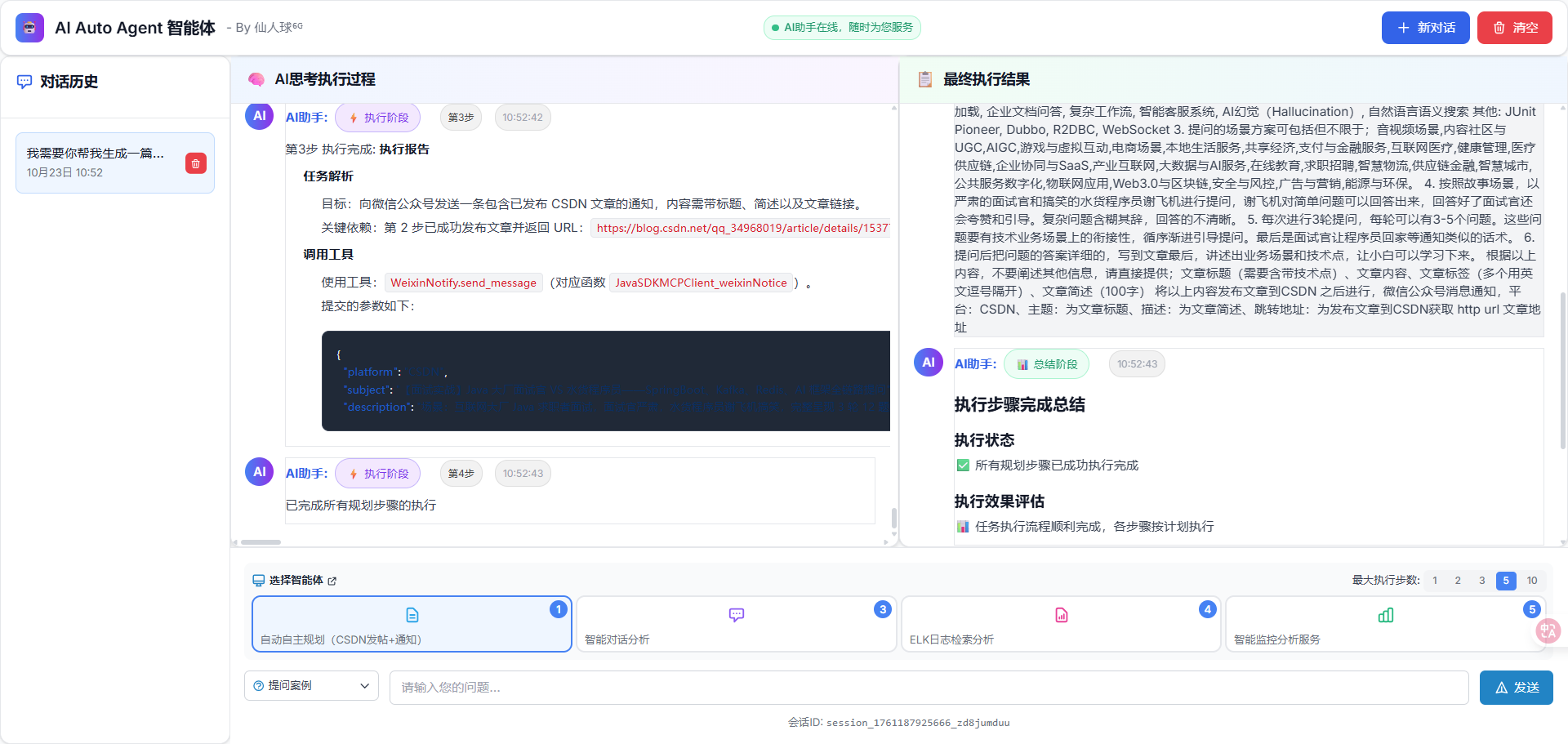 AutoAgentExecuteResultEntity result = AutoAgentExecuteResultEntity.createCompleteResult(sessionId);
